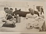JOUHANDEAU (Marcel). Correspondance avec André Gide. Paris, Marcel Sautier, 1958. In-16, 89-(7 dont les 3 dernières blanches) pp., maroquin noir veiné de vert, dos lisse, grand décor mosaïqué de pièces de papier glacé comme de marqueterie en camaïeu de verts ornant les plats, les contreplats et les gardes, tranches dorées, étui bordé (L. Gérard). ÉDITION ORIGINALE, UN DES 20 EXEMPLAIRES DE TETE NUMEROTES SUR CHINE. ENVOI AUTOGRAPHE SIGNE DE MARCEL JOUHANDEAU : « Pour Robert Moureau. Cher ami, il eût fallu nous voir ensemble, Gide et moi, comme le chat et le chien de la maison, qui s'entendent, mais sans oublier qu'ils appartiennent à deux espèces dont les rivages n'ont presque rien de commun. Bien amicalement... 10 mars 1958. » EXEMPLAIRE ENRICHI D'UN PORTRAIT PHOTOGRAPHIQUE D'ANDRE GIDE ANNOTE PAR MARCEL JOUHANDEAU (tirage au format carte postale), cliché pris en Corse à Saint-Florent durant l'été 1930, sans doute par Georges Noguès : André Gide y est représenté près d'un âne, en compagnie du boxeur Billy Balzac et de Sam Quinchon, compagnon de Georges Noguès. Le tirage, ici monté en tête, a été annoté de la main de Marcel Jouhandeau, au recto (« Gide », « l'âne », « Sam Quinchon »), et au verso : « Gide et l'âne. Ce dialogue vaut bien une correspondance. 10 mars 1958. Je n'étais pas de la partie. » Monté en fin de volume, un prospectus de l'éditeur où figure entre autres le présent ouvrage.