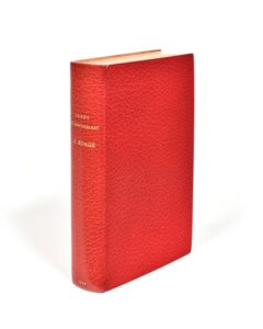 MONTHERLANT (Henry de). Le Songe. Paris, Bernard Grasset, 1922. In-16, (8 dont les 4 premières blanches)-348-(8 dont les 4 dernières blanches) pp., maroquin grenat, dos lisse, doublures de maroquin brun-beige en bord à bord, gardes de moire grenat, tranches dorées, couvertures et dos conservés, étui bordé (Semet & Plumelle). ÉDITION ORIGINALE, UN DES 10 EXEMPLAIRES DE TETE NUMEROTES SUR JAPON IMPERIAL, seuls sur grand papier avec 50 sur vélin pur fil. ENVOI AUTOGRAPHE SIGNE : « À Monsieur Robert Moureau, ce livre qui n'avait jamais rêvé d'avoir si belle enveloppe, et qui en est fier. Hommage de Montherlant. 18.2.1956 » Exemplaire enrichi du prospectus imprimé pour le débat du club du Faubourg tenu en 1923 sur Le Songe d'Henry de Montherlant, avec Louis Aragon comme l'un des « témoins à charge ». Au verso, notes manuscrites. Provenance : Robert Moureau (cuir doré ex-libris).