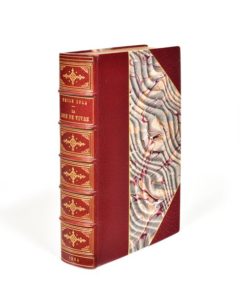 ZOLA (Émile). La Joie de vivre. Paris, G. Charpentier et Cie, 1884. In-18, (4)-447-(une blanche)-(4 de catalogue d'éditeur) pp., demi-maroquin bordeaux à coins, dos à nerfs cloisonné et fleuronné, filet doré en lisière de cuir sur les plats, tête dorée sur témoins, couvertures et dos conservés ; coins légèrement frottés, dos de couverture imprimé remonté avec petit manque (Semet & Plumelle). ÉDITION ORIGINALE, UN DES 150 EXEMPLAIRES NUMEROTES SUR HOLLANDE, seuls sur grand papier. Du cycle romanesque des Rougon-Macquart. Provenance : bibliothèque Prochian (vignette-ex-libris). JOINT, une lettre signée d'Edgar Faure, et une lettre signée de Louis-Alexandre Berthier.