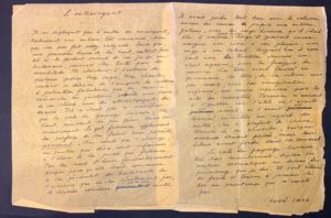 CHAR (René). Manuscrit autographe signé « René Char », intitulé « L'Extravagant ». 2 pp. in-folio sur papier pelure orangé ; papier fragile marges effrangées avec atteinte à 2 lettres. Texte paru en 1947 dans le recueil Le Poème pulvérisé, aux éditions de la revue Fontaine. « Il ne déplaçait pas d'ombre en avançant, traduisant une audace tôt consumée, bien que son pas fût assez vulgaire. Ceux qui, aux premières heures de la nuit, ratent leur lit et le perdent ensuite de vue jusqu'au lendemain, peuvent être tentés par les similitudes. Ils cherchent à s'extraire de quelques pierres trop sages, trop chaudes, veulent se délivrer de l'emprise des cristaux à prétention fabuleuse que la morne démarche du quotidien sécrète aux lieux de son choix, avec des attouchements de suaire. Tel n'était pas ce marcheur que le voile du paysage lunaire, très haut, semblait ne pas gêner dans son mouvement. Le gel furieux effleurait la surface de son front sans paraître personnel. Une route qui s'allonge, un sentier qui dévie, sont conformes à l'élan de la pensée qui fredonne. Par la nuit d'hiver fantastiquement propre parce qu'elle était commune à la généralité des habitants de l'univers qui ne la pénétraient pas, le dernier comédien n'allait plus exister. Il avait perdu tout lien avec le volume ancien des sources propice aux interrogations, avec le corps heureux qu'il s'était plu à animer auprès du sien lorsqu'il pouvait encore assigner une cime à son plaisir, une neige à son talent. Aujourd'hui, il rompait avec la tristesse devenue un objet aguerri, avec la frayeur du convenu. La terre avait faussé sa persuasion, la terre, de sa vitesse un peu courte, avec son imagination safranée, son usure crevassée par les actes des monstres. Personne n'aurait à l'oublier car l'utile ne l'avait pas assisté, ne l'avait pas dessiné en entier au regard des autres. Sur le plafond de chaux blanche de sa chambre, quelques oiseaux étaient passés, mais leur éclair avait fondu dans son sommeil. Le voile du paysage lunaire, très bas maintenant, déploie ses couleurs aromatiques au-dessus du personnage que je dis. Il sort éclairé du froid et tourne à jamais le dos au printemps qui n'existe pas... » Dans son « arrière-histoire du Poème pulvérisé », René Char proposa ce commentaire, cette « marge confidente » à « L'Extravagant » : « Le sujet de ce poème est une affreuse circonstance que je ne veux pas décrire, une marche au supplice. Hypnos remplit le rêve et découvrit le cauchemar. (En période de barbarie, l'exercice de la justice sommaire par l'action n'aboutit qu'à un démantèlement presque fatal de nous-mêmes, nous fait déboucher sur de plaintives et crépitantes interrogations. Mais cela ne se produit, heureusement, que plus tard, quand notre conscience s'est ressaisie, quand l'épreuve a été dépassée, quand ce qui devait être sauvé a effectivement été sauvé.) »