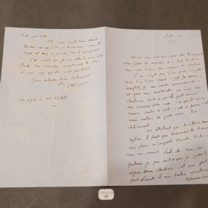 FLAUBERT (Gustave). Lettre autographe signée « Gve Flaubert » à Ivan Tourguéniev. [Croisset près de Rouen], « lundi 16 » [août 1875]. 3 pp. 1/2 in-8. GUSTAVE FLAUBERT ENTRAINE DANS LA RUINE. Sa nièce adorée, Caroline, avait épousé un marchand de bois, Ernest Commanville, qui fit faillite en 1875. Associé à cette débâcle financière, l'écrivain dut vendre une ferme à Deauville, quitter son appartement parisien, et finalement accepter une pension sans obligation de service du ministère de l’Instruction publique. « Comme vous êtes bon, mon cher Tourguénef... mais vous n'avez pas compris la situation. Il ne s'agit pas d'une "perte d'argent" mais bien d'une ruine. C'EST LA RUINE, complète, p[our] mon neveu Commanville, et pour moi, considérable. Ma nièce Caro abandonne tout ce qu'elle peut donner aux créanciers de son mari. – & quand nous aurons vendu le reste, c'est à peine s'il nous restera de quoi vivre. Très chétivement. En attendant que les affaires soient réglées, il faut que Commanville trouve une place, n'importe laquelle. Voilà où nous en sommes. peut-être, moi, ne perdrais-je pas tout ce que je possède ? LE PIRE DE MA SITUATION, C'EST QUE FORT PROBABLEMENT IL ME FAUDRA ABANDONNER LE PAUVRE CROISSET, où je vis depuis trente ans !... Vous voyez que mon existence est bouleversée, mon cher ami, & que c'est un désastre complet. Je doute que jamais je puisse re-travailler ? – & p[our]tant j'aurais besoin de travailler p[our] gagner de l'argent, mais je suis impropre à quoique ce soit. AH ! SI UNE MALADIE M'EMPORTAIT, QUELLE SIMPLIFICATION ! JUSQU'A PRESENT, J'AVAIS CRU QUE LA MORT ETAIT LE PIRE DES MAUX ; NON ! LE PIRE, C'EST DE VOIR L'HUMILIATION DE CEUX QU'ON AIME. Je [...] souffre cruellement, je vous en réponds ! D'ici à une quinzaine, il y aura du nouveau. C'est à dire que l'on saura si la faillite sera déclarée – après quoi, j'irai sans doute à Concarneau, car j'ai besoin de prendre l'air ! Depuis quatre mois, ma pauvre nièce & moi, nous vivons dans une solitude abominable, à cause des angoisses qui la remplissent, & il faut que je sorte d'un pareil milieu coûte que coûte. Ah ! ce qui serait beau, ce serait de venir me voir là-bas, à Concarneau ! Mais le voyage est long & je n'ose vous le proposer. Il est inutile que je vous attriste avec mes plaintes ! Vous connaissez maintenant la chose et vous voyez qu'elle n'est pas drôle. Je vous embrasse bien tendrement... Mes respects à m[adam]e Viardot [Ivan Tourguéniev entretint une longue amitié amoureuse avec la cantatrice Pauline Viardot]. » Gustave Flaubert et Ivan Tourguéniev nouèrent en 1863 une forte amitié qui dura jusqu'à la mort de Gustave Flaubert en 1880. Ivan Tourguéniev traduisit en russe « La Légende de saint Julien l'Hospitalier ». Provenance : collection Viardot (timbre sec).
