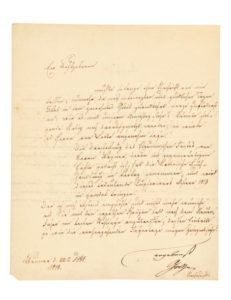 GOETHE (Johann Wolfgang von). Lettre autographe signée en deux endroits avec un mot autographe, …