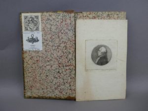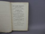 Bailly Sylvain - Hommage à sa mémoire, précédé de la préface générale, d'une édition projetée d’œuvres dramatiques et littéraires. S.E., S.L, S.D (circa 1790). 1 volume in-8°, reliure fin XIXème, demi-basane marron, dos à nerfs avec pièce de titre en maroquin rouge, caissons ornés de filets et fleurons dorés, reliure signée Capé. Mors frottés et un peu fragile, coiffe arasée. XLVIII pp. - 208 pp. Impression sur beau papier ; a été ajouté un feuillet volant (portrait de Bailly). Ouvrage très rare imprimé à seulement 15 exemplaires.