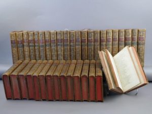 Collectif - Le cabinet des fées ou collection choisie des contes de fées, et autres contes merveilleux, ornés de figures. Amsterdam et Paris, rue et hôtel Serpente, 1785/1786. 37 volumes in-8°, reliure homogène d'époque en plein veau porphyre. Nombreux défauts de reliure en coiffes et coins, piqûres éparses, deux ou trois cahiers déboîtés, quelques mors fendus. Rare série complète comprenant les contes du monde entier dont les contes de Perrault. L'ensemble est illustré de vignettes hors-texte.