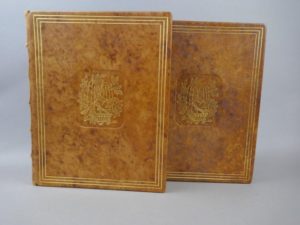 Brantôme - Touchet jacques - La vie des dames galantes. Paris, éditions de la belle étoile, 1938. 2 volumes in-4°, reliure éditeur en plein veau, décor doré sur les plats et au dos, auteur et titre dorés, têtes dorées. Couvertures conservées. Illustrations en couleurs et noir de Jacques Touchet, exemplaire numéroté sur 1253 sur vélin. Piqûres sur les tranches.