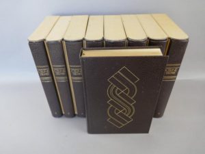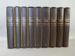 Céline (Louis Ferdinand) - Moretti Raymond - Œuvres de Céline. Paris, édition du club de l'honnête homme, 1981. 9 volumes in-8° sous étui, reliure éditeur en pleine peau, décors dorés à froid sur les plats, dos lisses avec auteur, titres et filets dorés, têtes dorées. Série complète illustrée en couleurs par Moretti, maquette réalisée par Massin, exemplaire n°715/5700 imprimés sur vergé. Série propre et sans rousseur.