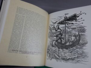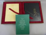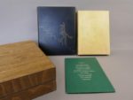 Erasme - Chièze Jean - Eloge de la folie. Paris, Union Latine d’Editions, 1967. 1 volume in-4°, reliure éditeur en pleine peau noire, plats avec décors dorés, dos lisse avec auteur, tête dorée. Très légers défauts de l'épiderme sur les plats. Intérieur propre sans rousseur, quelques taches à la page 6, 7 et 44. Bois gravés en noir par Jean Chièze sous serpentes légendées. Exemplaire n° 93. Ouvrage enfermé dans un coffret imitation bois doublé de velours rouge auquel est joint un fac-similé de l'édition de 1515. 1 volume in-8°, reliure en vélin moderne à l'imitation des reliures du XVIème.