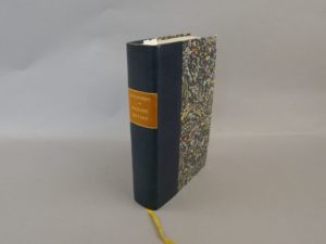 Flaubert Gustave - Madame Bovary, mœurs de province. Paris, Michel Lévy frères, imprimerie Tertelin, 1858. 2 tomes en 1 volume in-8°, reliure moderne en demi-maroquin bleu, pièce de titre en maroquin havane. 490 pp. Pagination continue. Les deux titres ont été conservés. Quelques rousseurs éparses. La lettre, imprimée et adressée à son avocat par Flaubert pour le remercier de son travail et de la publicité faite à son roman, a été conservée et placée avant le faux-titre du tome 1. Edition un an après l'originale.