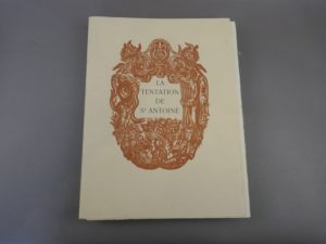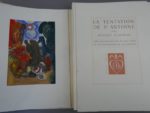Flaubert Gustave - Daragnès Jean-Gabriel - La tentation de Saint-Antoine. Paris, chez Daragnès, 1939.1 volume grand in-4° en feuilles couverture illustrée. Complet avec sa boite ; petits défauts et rousseurs à celle-ci. Estampes en couleurs de Daragnès, exemplaire n° 106 sur vélin.