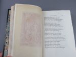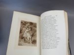 Le Tasse - La Jérusalem délivrée. Traduite en vers français par Baour-Lormian. Paris, Delaunay libraire, 1819. 3 volumes in-8°, reliure postérieure en demi-maroquin vert foncé à coins. Dos à 3 nerfs avec un grand caisson contenant un décor doré à la grotesque, titre et date dorés, tête dorée. Reliure signée René Kieffer. Belle impression sur papier de Hollande, grandes marges. Ouvrage illustré d'un frontispice et de 3 planches. Chaque estampe se trouve en 3 états, accompagnée d'une aquarelle pour 3 d'entre-elles et d'un dessin au fusain pour l'une d'elle. Ces originaux ne sont pas signés ; ils ont soit servi à réaliser la gravure, soit été peint d'après la gravure. Belle série bien reliée et sans rousseur.