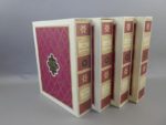 Lemarié Henry - Cervantes Miguel - L'ingénieux Hidalgo, Don Quichotte de la Manche. Paris, éditions d'art les heures claires, 1960. 4 volumes in-4°, en feuilles sous chemises et étuis, couvertures rempliées. Exemplaire n°1844, un des 2450 exemplaires sur vélin de Rives. Couvertures légèrement brunies sur les premiers plats. Bel exemplaire illustré en couleurs par Lemarié. Sans rousseur. Série complète.