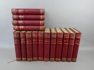 Loti Pierre - Œuvres complètes de Pierre Loti. Paris, Calmann-Lévy, 1936. 15 volumes in-4°, reliure d'éditeur en plein chagrin rouge, 3 filets dorés sur le premier plat, dos à nerfs, avec auteur titre et filets dorés, têtes dorées. Quelques petites piqûres sans gravité sur la tranche. Chaque volume est illustré en couleurs. Mathurin Méheut : Pêcheur d'Islande, les autres illustrateurs sont : Charles Fouqueray (2 titres), A. Marty (2 titres), Sylvain Sauvage (2 titres), Deluermoz (2 titres), Albéric Calbet, Emilien Dufour, Auguste Leroux, Domergue, Lalau, Pierre Brissaud. Série en très belle condition, complète et sans rousseur.
