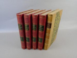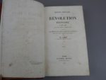 Cabet Etienne - Histoire populaire de la révolution française de 1789 à 1830. Paris, Pagnerre, 1839. 4 volumes in-8°, reliure du temps en demi-basane rouge, dos lisses avec filets dorés, fleurons à froid, pièces de titre et de tomaison en basane noire. Ensemble solide, quelques défauts d'usage dont 1 fente de 3 cm sur un mors et petites parties insolées sur deux plats. Rousseurs. On joint 1 volume. Allain E. L’œuvre scolaire de la révolution 1789-1802. Paris, Firmin Didot, 1891. 1 volume in-8°, reliure d'époque en demi-basane marron clair à coins, dos à nerfs, filets dorés, pièce de titre en maroquin marron. Frottements d'usage. J.P. Barat relieur, ex-libris, Jarry. Exemplaire correct.