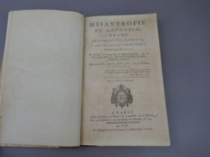 Vermond Abbé ( Duveyrier Honoré-Nicolas) - La dernière édition de la cour plénière, Héroï-Tragi-Comédie, en trois actes et en prose. A Baville, chez la veuve liberté à l'enseigne de la révolution 1788. E.O. 1 volume petit in-4° format in-8°, reliure milieu XIXème en demi-basane verte dos lisse avec titre et fers dorés. Dos insolé, petites usures des coiffes. Jolie vignette sur la page de titre avec bœuf et grenouilles. 108 pp. - VIII pp. On joint une pièce intitulée Misanthropie et repentir, pièce allemande de Kotz-Büe traduite par Bursay. Paris, chez le libraire au théâtre du Vaudeville An VII (1798). Reliure XXème en demi-basane racinée, pièce de titre en basane noire. Titre XI pp. - 123 pp.