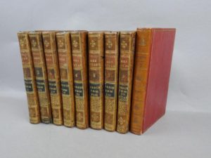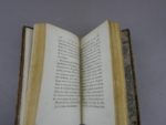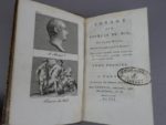 Bruce James - Voyage aux sources du Nil. Bibliothèque portative des voyages. Paris, Lepetit, An VII (1799). 9 volumes in-16, reliure du temps en pleine basane racinée, dos lisses avec décors dorés, pièces de titre en maroquin rouge, noir pour la tomaison. Quelques défauts d'usage et petites galeries de vers externes sur les plats. Tome 7 dans une reliure différente, Bradel en en cuir de Russie rouge, dos insolé. Rare série bien complète de son atlas composé d'1 carte et de 22 planches gravées par Tardieu l'Aîné. La première planche a été reliée en frontispice du premier volume. Cachet humide du Château de Percey dans l'Yonne.