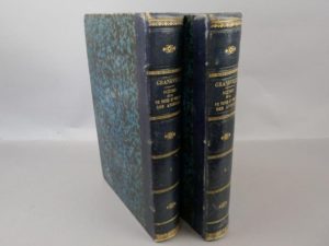 Granville - Scènes de la vie privée et publique des animaux. Paris, Hetzel, 1842. Illustrations de Granville. Etudes des mœurs contemporaines par Balzac, Sand, Nodier, etc. 2 volumes in-8°, reliure d’époque en demi-chagrin bleu marine, dos lisses auteur, titre et fleurons dorés. Frottements d'usage en pieds, coiffes et coins. Quelques rousseurs au début du second volume, sinon exemplaire correct, illustré d’un grand nombre de gravures hors-texte en noir.