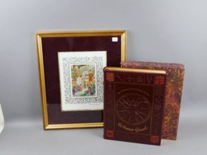 JOUBERT (Pierre) - LES ROMANS DE LA TABLE RONDE / LE SAINT-GRAAL + LA MORT D’ARTHUS (Jacques Boulenger) Editions du Cadran 1994 - Ouvrage illustré par Pierre Joubert, relié pleine peau, estampé à froid d’un décors au dragon, toutes tranches dorées, sous étui galbé bordé cuir, un des 880 exemplaires (sur un tirage total de 1200) Exemplaire No 471 accompagné d’une miniature hors texte en couleurs signée au crayon « P. Joubert » et encadrée Superbe état