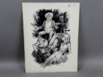 JOUBERT (Pierre) - Dessin original à l’encre de chine, au lavis et à la gouache blanche signé « P. Joubert » avec indication manuscrite « Chambertin SSDP 41 » (illustration pour « La Bible de Chambertin » volume 41 la collection Signe de Piste) Dessin format environ 19x28 cm sur bristol 25x32 cm (encadré)