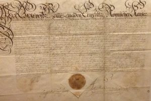 pour Charles-Urbain de Rets Brisuila de Chanclos, seigneur de Lesves, donnée à Vienne le 13 décembre 1725. Grand document calligraphié avec sceau sur papier, signé par l'empereur Charles VI et du prince Eugène de Savoie. Dimensions : 46 x 69 cm, monté sur carton blanc par les coins, traces de pliure. Le même jour, il fut nommé commandant du Régiment d'infanterie Prince de Ligne. En 1744, il fut gouverneur d'Ostende. En 1754 il est Général feld-maréchal, commandant des troupes aux Pays-Bas. Né à Namur en 1686, mort à Bruxelles le 29 novembre 1761. Son père est cité dans le document en qualité de feld-maréchal et gouverneur d'Audenarde.