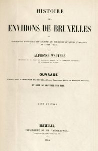 Histoire des environs de Bruxelles ou description historique des localités qui formaient autrefois l'ammannie de cette ville. Brux., Vanderauwera, 1855, 3 vol. gd 8°, [6]-LXXIX-546, [6]-5-760[-2], [6]-5-756-[[4]-5-170 p., gravures sur bois in-texte, 1 carte dépliante, demi-basane verte de l'époque, dos lisses ornés de motifs romantiques dorés en long (plis aux premiers f. du t. 3). Le t. 3 contient la table alphabétique des matières.