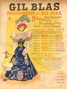 Affiche.- "Transformation du Gil Blas" (1896). Affiche réalisée par Albert Guillaume pour le quotidien "Gil Blas". Lithographie en couleurs entoilée. Variante de lettre et de format. P., Affiches Camis, 1896, dim. : 79 x 61 cm (pet. mouill., plis).