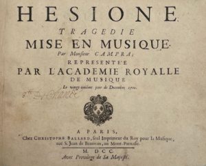 Paris, Christophe Ballard, 1700. In-4 oblong, plein veau brun de l’époque, dos à 5 nerfs, caissons ornés, pièce de titre de maroquin rouge, titre, tables [IV], LVIII et 259 pp., extrait du privilège. Édition originale de la partition, sur des paroles de Danchet, dont « le poème est intéressant et disposé de manière à produire un spectacle brillant » (Clément et Larousse). Petits défauts à la reliure (coins et coiffes émoussés), intérieur très propre.