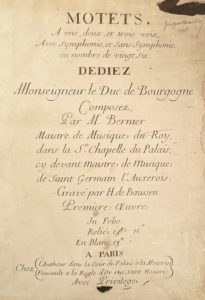 Nicolas BERNIER (c. 1665-1734) — Motets à une, deux, et trois voix, Avec symphonie, et sans symphonie, au nombre de vingt six, dédiez à Monseigneur le Duc de Bourgogne…Première Œuvre.