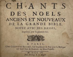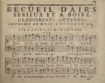 Paris, Christophe Ballard, 1704. Petit in-4 oblong, pleine basane olive, dos à 5 nerfs, ornements à froid, dentelles intérieures dorées, titre, table, 39 pp., extrait du Privilège. Premières pages salies, fort manque de papier en marge de la dernière page. Relié avec : Recueil d’airs sérieux et à boire de différents auteurs, imprimez au mois d’octobre 1714. Paris, Christophe Ballard, 1714, titre, pp. numérotées 183 à 202, soit 20 pp, table et extrait du privilège. Airs de Prunier-Fils, D.L.T., Leguay, Dauphin, Mademoiselle B., Duquesne, Campion,… ; Recueil d’airs sérieux et à boire de différents auteurs, may 1717, pp. 83 à 102, soit 20 pp., table et extrait du privilège. Airs de Desfontaines, Dauphin, D.L.T., Leguay, Mr de France de Laon, La Serre, Le Tourneur,… ; Recueil d’airs sérieux et à boire de différents auteurs, octobre 1718. Paris, J-B-Christophe Ballard, titre, pp. 183 à 202, soit 20 pp., table et extrait du privilège. Airs de Lemaire, Duplessis, Desfontaines, Charles, J.R. Froger l’aîné, d’Orléans, Boulley,…; Recueil d’airs sérieux et à boire de différents auteurs, novembre 1718. Paris, J-B-Christophe Ballard, titre, pp. 203 à 222, soit 20 pp., table et extrait du privilège. Airs de Guinard, Habigant, Desfontaines, Couperin (La Voluptueuse), Boulley, Duplessis, Lemaire,…