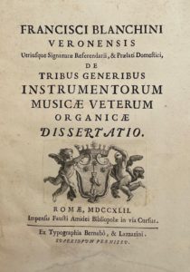 Francesco BLANCHINI (1162-1729) — De tribus generibus Instrumentorum musicae veterum organicae.