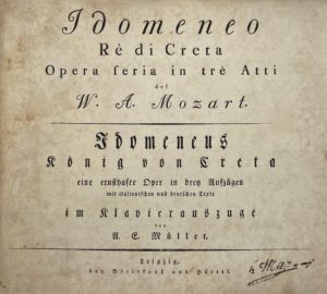 Leipzig, Breitkopf und Härtel [1798]. In-folio oblong, plein vélin vert de l’époque, pièces de titre de maroquin rouge au dos et au premier plat, titre, 190 pp. Toujours Koechel 366, cette fois le premier tirage de la réduction piano et chant par A.E. Müller, qu’on doit considérer comme la 3ème édition. Bon exemplaire en reliure d’époque.