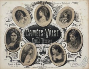 On joint TEDESCO. « Camées – Valse », lithographie de Denis. Beaux portraits de Schneider, Judic, Montaland, Moisset, Sebel…peu courant.