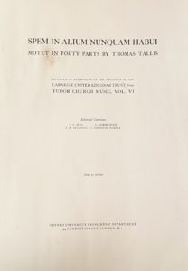 London, Oxford University Press, 1928. 3 volumes grand in-folio, brochés, 20, 20, 20 pp. Première édition scientifique de cette composition historique, donnée en concert par Jacques Chailley à la Salle Pleyel en mai 1954 avec son ensemble choral « L’Alauda » (cf supra, Archives J. Chailley). Sont réunis ici, selon la volonté du musicologue, trois exemplaires de l’édition princeps moderne avec de nombreuses marques d’interprétation manuscrites pour deux d’entre eux.