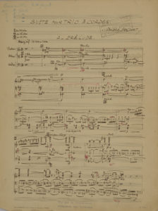 [1934] ; 18 pages in-fol. Manuscrit de la Suite pour trio à cordes, accompagné de brouillons et documents sur sa genèse.