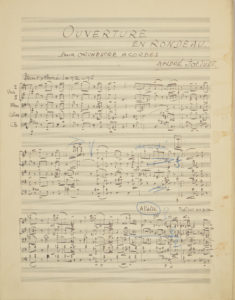 André JOLIVET — MANUSCRIT MUSICAL autographe signé, Ouverture en rondeau pour orchestre à cordes [K 86b],
