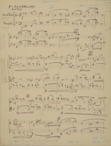 ON JOINT 3 feuillets d’esquisses, et 1 feuillet de notes sur la forme et la durée de l’œuvre.
