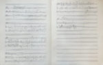 – 4er PRELUDE, « INSTANTS DEFUNTS » : « 1° Faire avec les éléments contenus dans cette page un prélude très ému (dans le genre de Pas sur la neige [de Claude Debussy], une nuance pp tout le temps). Court, en 2 parties. 1ère partie ré min., triste, 2e partie si maj. calme. 2° Faire un prélude furieux (comme Ce qu'a vu le vent d'ouest [de Claude Debussy]) où je me peindrai entre 14 et 17 ans, le terminer par un thème d'amour pp. 3° Faire un prélude léger, gracieux (comme la Danse de Puck [de Claude Debussy]) sur le vent, les feuilles, etc. avec des superpositions de modes, des trilles. Jolie écriture de piano, genre Jeux d'eau [de Maurice Ravel] et Cloches à travers les feuilles [de Claude Debussy]. Au milieu de ce 3e prélude un canon par m[ou]v[emen]t contraire » (3 pp. sur un bifeuillet). En dernière page du bifeuillet, un fragmet musical, et une longue note programmatique détaillée « Écrire un morceau très long à 2 pianos intitulé "Essai" en forme de menuet à 2 trios (Schumann)... » (1 p.).