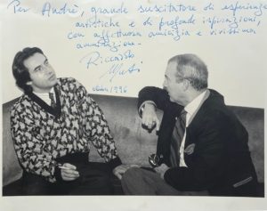 *Riccardo MUTI (1941). Superbe photographie (24 x 30 cm) en compagnie d’André Tubeuf. Non moins superbe envoi autographe en italien.