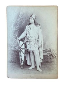 Jointe : Une photographie d’Erik Schmedes en Siegfried. Wien, Szekely, c. 1900, 10 x 20,5 cm, encadrement art nouveau cuivré. Belle photo du ténor wagnérien en une posture attentiste, dans un costume très étudié.