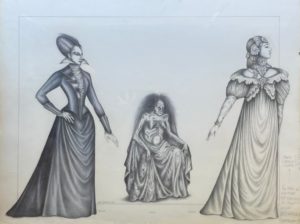 1978/79. Lithographie en noir, 50 x 65 cm. Portraits en pieds de « Fricka, Erda et Freia », avec envoi autographe de l’artiste : « Marie, Camille, Claire (Die Töchter) / Für Marie-José und André / Mit grossem Respekt + liebe / Pet Halmen / Strasbourg 1979 ». Excellent état. On joint un volume in-4 (Munich, 1986, 84 pp.) catalogue abondamment illustré de l’exposition des décors, costumes et affiches de l’artiste Pet Halmen.
