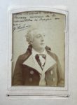 *Photographies format Cabinet, en commencement d’album : Gabrielle Krauss en costume d’Orphée (Benque) ; Jean-Baptiste Faure dans Pierre de Médicis, de Poniatowski, 1861 (Reutlinger) ; Renaud dans Hamlet d’Ambroise Thomas (Du Guy) ; G. Soulaesis dans les Dragons de Villars (bel envoi autographe à sa « charmante camarade Savenay », Lejeune/Joliot), Maria van Zandt dans Mignon de Thomas (envoi autographe de la cantatrice daté Paris le 2 mai 1881, Benque), Van Dyck en costume fourré pour la Walkyrie (Benque), très belle épreuve ;