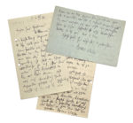*3 Lettres autographes signées à M. Guttmann, datées Barcelona 16.IV.1921, Garmisch 2.VII.1922 et sans lieu le 5.IX.1924. Une page et demi in-4, 4 pages grand in-8, 2 grandes pages in-8, toutes en allemand, trous de classeurs. Walter évoque un voyage et un concert à Strasbourg dans la première, à Brême, à Hambourg et Münich pour la deuxième, la dernière à propos de Delia Reinhardt entre autres…