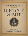 Joint : Erik Wolfgang KORNGOLD (1897-1957). Die tote Stadt. Mainz, B. Schott’s Söhne, 1920, in folio, cartonnage illustré de l’éditeur, 209 pp. Première édition (après 100 japon signés) de la réduction piano et chant par Ferdinand Rebay de cet opéra dont le livret de Paul Schott s’inspire du « Bruges-la-Morte » de Georges Rodenbach.