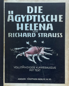 *Die Ägyptische Helena, opus 75. Berlin, Fürstner, 1928, dos toilé, cartonnage illustré de l’éditeur, 336 pp. Premier tirage peu courant de la réduction piano et chant, bel état.