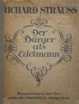 *Der Bürger als Edelmann. Fürstner, 1918, broché, couverture illustrée en rose et vert, 125 pp. Premier tirage de la réduction piano et chant envoi autographe signé du compositeur daté 6.18 en couverture, malheureusement partiellement gratté. Mouillures pales, dos toilé tardivement.