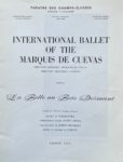 *International Ballet of the Marquis de Cuevas. Paris, Théâtre des Champs-Elysées, 1961, petit in-folio, agrafé [54 pp]. Illustr. en couleurs des décors et costumes de Larrain en couv. et sur papier fort, nombreuses photographies des membres de la Compagnie en noir et blanc sur papier glacé.