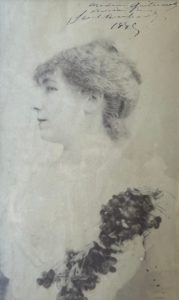 c. 1885. (17,5 x 29,5 cm sous marie-louise, cadre doré, 38,5 x 53 cm, accidents). Envoi autographe sur le tirage à Madame Guillemot, signé et daté 1885. Portrait rare.