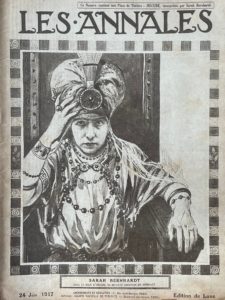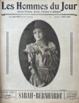 Les Hommes d’aujourd’hui, 25 octobre 1878, 4 pp. in-8, très belle caricature en couleurs par André Gill (un coin déficient) ; Galerie Contemporaine (c. 1880, 4 pages in folio, portrait en photoglyptie) ; « Conquête de l’Amérique par Sarah Bernhardt », La Caricature (n°60, 19 février 1881, petit in-folio, en feuilles, 8 pp), belle couverture illustrée en couleurs (défraîchie) ; La Samaritaine (4 pages in-8, papier bleu, édité par Fasquelle, c. 1896) ; Les Hommes du Jour, « Mme Sarah Bernhardt », 12 novembre 1910 et Spécial S.-B., 28 avril 1917 (2 fascicules in-4, en feuilles, 16 pp chacun) ; Numéro-Programme de L’Illustration, 7 décembre 1902, « Les Rois » de Jules Lemaître au Théâtre de la Renaissance, 4 p. in-12 ; L’Illustration, supplément au n°3122, 27 décembre 1902 : « Théroigne de Méricourt » avec portrait de l’actrice et décors de la pièce (in-4, agrafé, 32 pp) ; La Rampe, n°8 – 16 septembre 1899, in-4, agrafé, 16 pp – Numéro édité spécialement à l’occasion de la Tournée entreprise par Sarah Bernhardt, portraits par Mucha entre autres ; Le Rire, n°110, 12 décembre 1896, in-4, en feuilles (petit défauts), grand portrait double page par Charles Léandre : « L’Apothéose de la grande tragédienne » ; l’Echo de Paris, S.B. par Henry Bauër, nombreux portraits, petit in-folio, 20 pp, feuillets détachés ; Les Annales, édition de luxe, 24 juin 1917, in-4, agrafé, 32 pp., numéro consacré à Hécube, interprétée par S. Bernhardt ; le Gaulois du Dimanche, 13-14 juillet 1901, in- plano, une feuille pliée, 4 pp., L’Aiglon de Rostand vu par les écrivains du temps, nombreux portraits, déchirures aux plis ; L’Aiglon et nombreux portraits ; « Portrait de Sarah Bernhardt » par Dudley Hardy, deux pages grand in-folio, reproduction du tableau en couleurs et son commentaire, c. 1900 ; Le Théâtre, belle photo « colorisée » dans Le Procès de Jeanne d’Arc en couverture, n°264, décembre 1909, in folio, 32 pp., bon état ; biographie et portrait tirés de l’Album Mariani (4 pp. in-8).