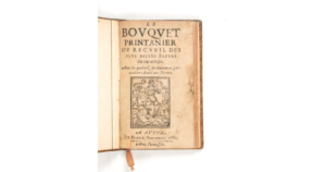 — Charles Nodier (1780-1844 ; ex-libris ; sa vente, Paris, Techener, 1844, n° 1062 : “livret très rare et qui parait avoir échappé jusqu'ici aux recherches des plus savants et des plus exacts bibliographes. Je ne le trouve indiqué dans aucun catalogue, et je n'en ai jamais rencontré que ce joli exemplaire qui vient de la bibliothèque Richard Heber où l'on peut dire que tout se trouvait”)