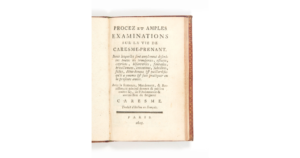 3 : La Copie d'un Bail et Ferme faicte par une jeune Dame de son Con. Paris, Pierre Viart, 1609 ; 4 : La Raison Pourquoy les femmes ne portent Barbe au Menton, aussi bien qu'à la Penilliere. Paris, 1601 4 ouvrages en 1 volume in-8 (156 x 98 mm). Fleurons et initiales gravés sur bois.