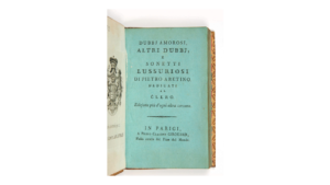 BIBLIOGRAPHIE : Brunet, I, 406 : “50 exempl. sur pap. vélin et au moins un exemplaire sur pap. bleu”, peut-être celui-ci -- Gay, II, col. 46 -- voir aussi Pia, col. 390-391 pour l'édition de 1792 à Rome